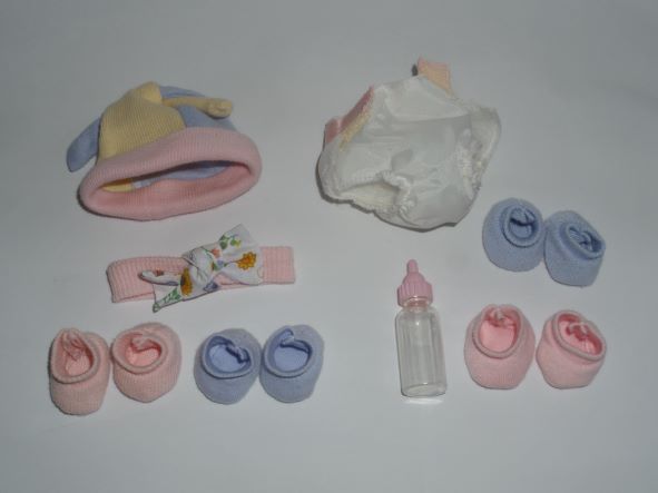 1999 En haut : tenue d'origine (à gauche) de Mini-Calin Coco, pyjama du Coffret Mini-Calin Viki,