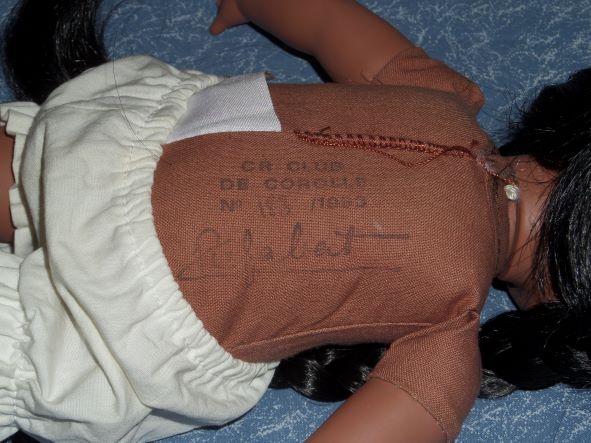 Je suis Paquita la péruvienne de 1993. Je fais partie des Poupées à travers le Monde. Je porte une perruque. Mes cils sont en dur. Je suis en tenue d'origine complète. Je suis signée Catherine Refabert.